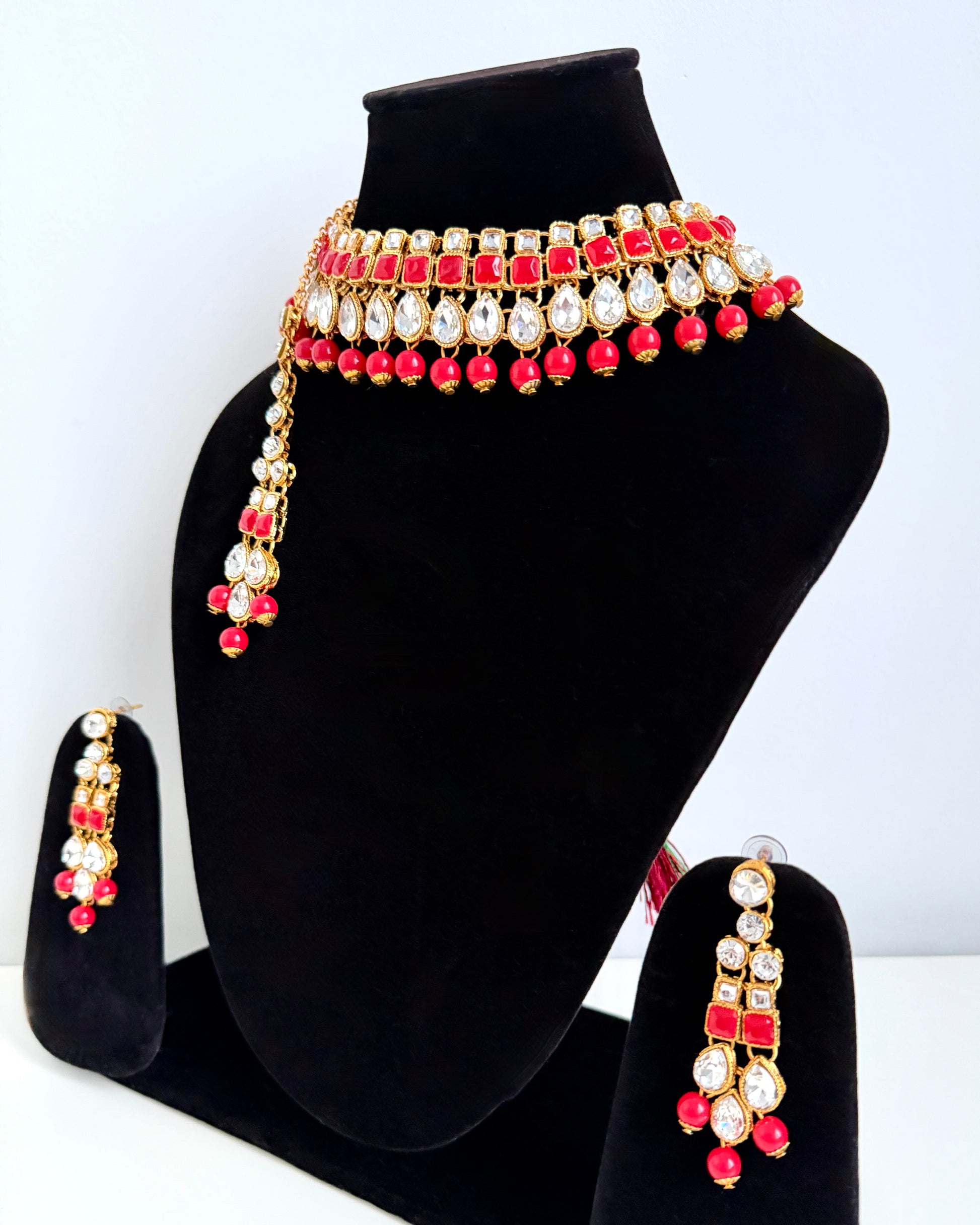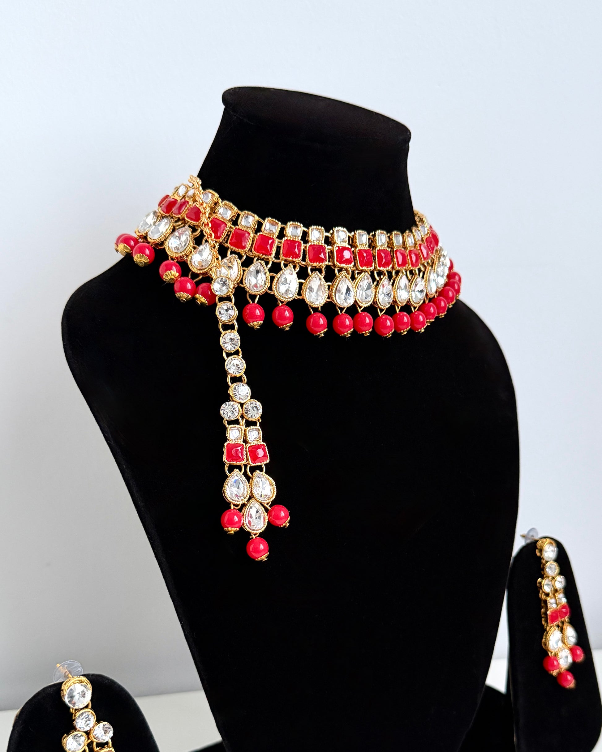 - ketting, oorbellen en maang tikka