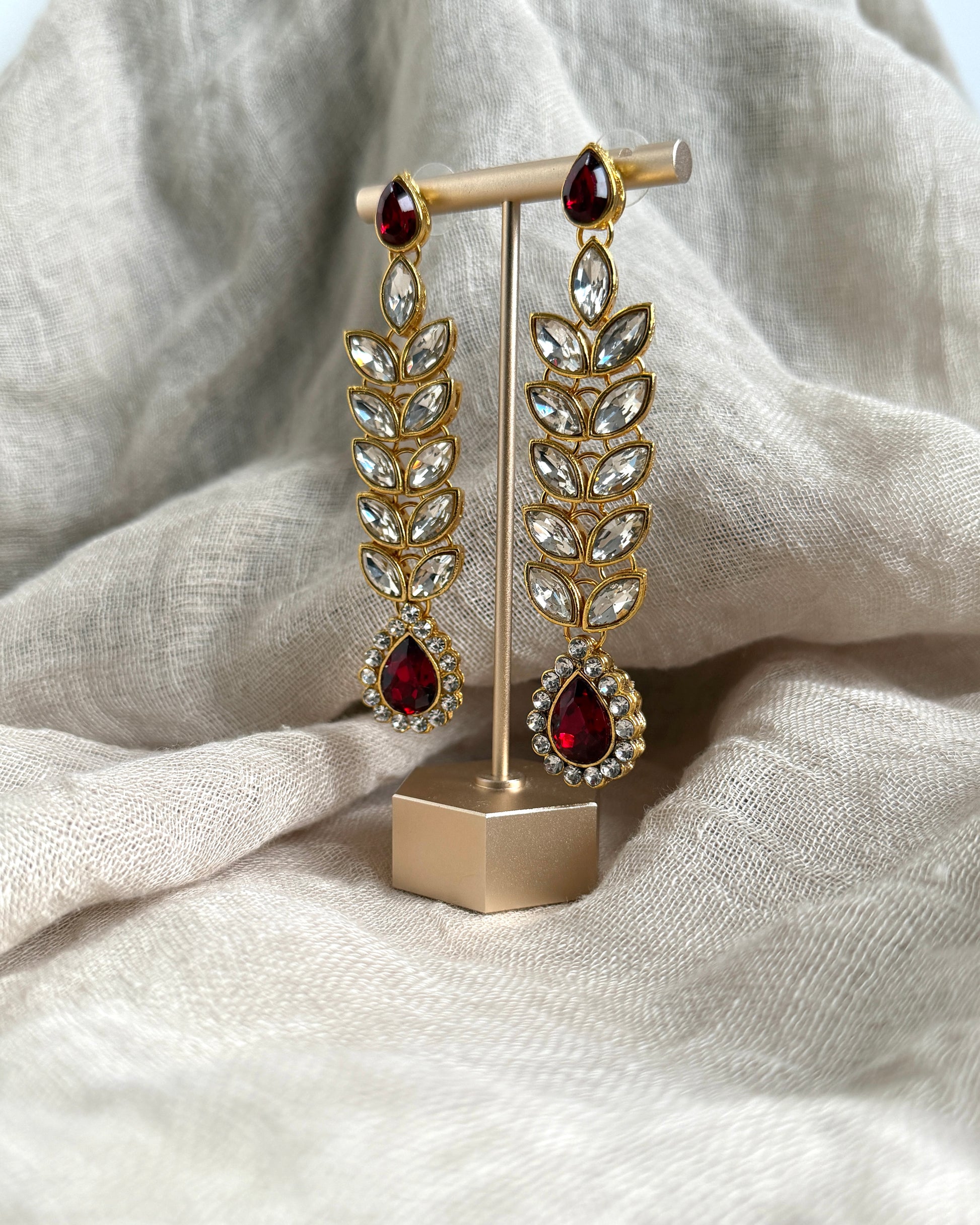 Statement oorbellen met bordeauxrode stenen